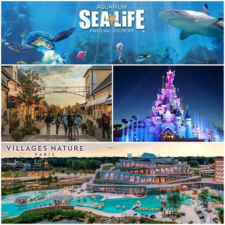 A Sea Life Paris Val d'Europe akvárium körülbelül egy 25 perces sétára található 3 hálószobás Villa Vergers Disneyland Bmyguest Serris medencére néző terasszal büszkélkedik.